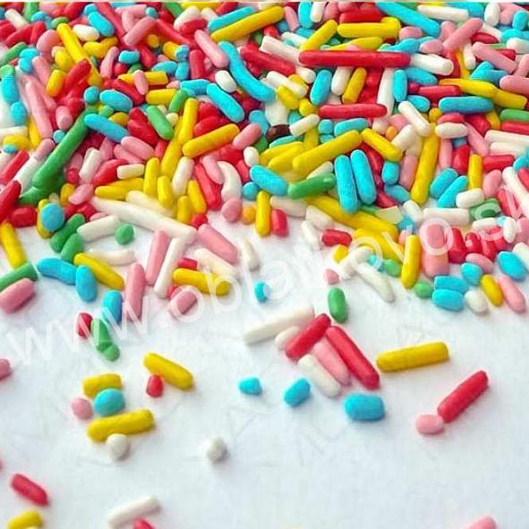 Úvod »Hmoty, Pasty, Posypy» Posyp cukrové tyčinky farebné 100g